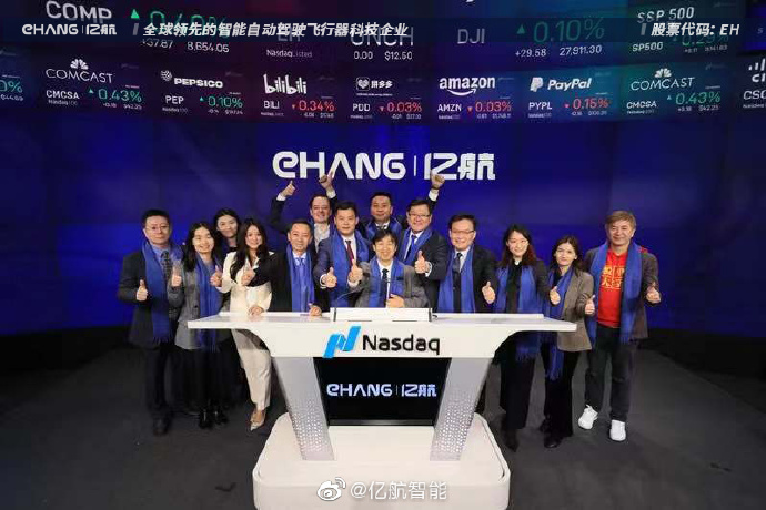北京时间12月12日晚间,智能自动驾驶飞行器科技企业亿航智能(Nasdaq:EH)迎来了美国纳斯达克敲钟时刻。