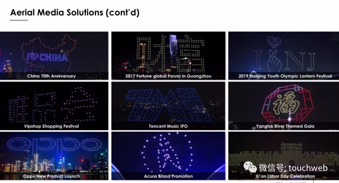 目前,亿航团队完成2017年财富论坛灯光秀、致敬改革开放40年国庆灯光表演、“我与国旗同框·广州站”等多场大型活动编队表演。