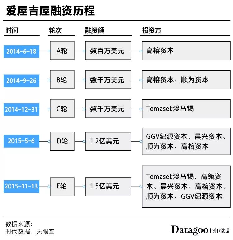爱屋吉屋是由两个互联网创业人黎勇劲和邓薇在2014年联合创立的。创立之初就创下了最快完成五轮融资的记录,从A轮到E轮,爱屋吉屋只花了15个月,吸引了Temasek淡马锡、GGV纪源资本等国际资本的青睐,估值超过10亿美元。