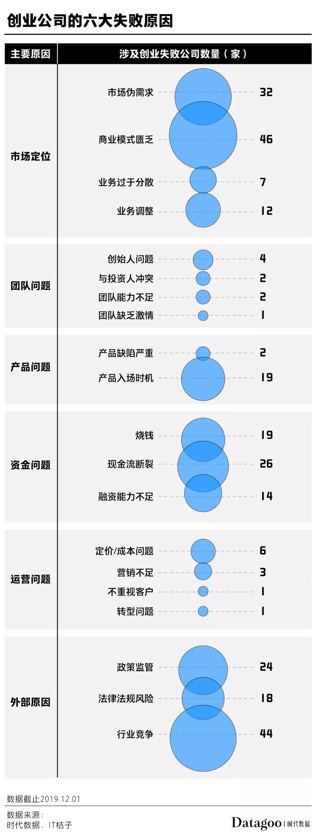 在这327家公司中,创业失败均离不开市场定位问题、资金问题、团队问题、产品问题、运营问题以及外部因素等六个原因。但最主要的原因还是市场定位问题、资金问题以及外部因素。