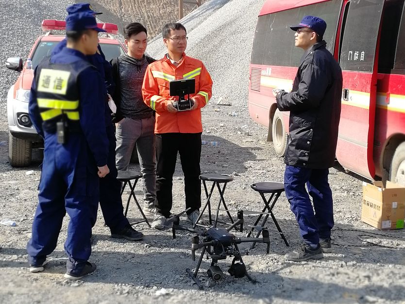 在接到省消防总队通知后,DJI 大疆行业应用第一时间派遣服务团队奔赴现场支援。