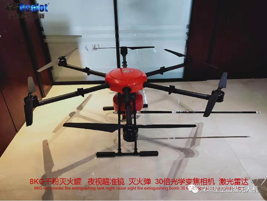 星空工业级系列,应急消防无人机,机体采用碳纤维材料,碳纤维材料拥有更轻的重量和更高的强度,可搭载光电吊舱、30倍光学变焦相机、摄像机、夜视瞄准镜、激光雷达、红外成像仪、多/高光谱成像仪、喊话器、灭火弹、游泳圈、救援物资等设备。