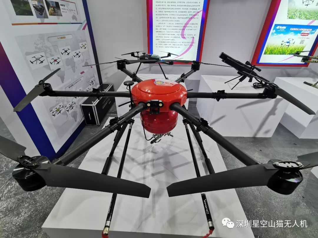 此次展会深圳星空无人机应邀参加展会。携公司多款新产品——6轴23L农业植保无人机、4-16教练机、军警侦察无人机、应急消防无人机、反无人机枪等精彩亮相,展位吸引了众多参观者的广泛关注。
