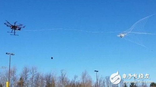 用枪对于爱好和平的中国人民来说确实是一个过分的要求,不过没关系,在今年年初,美国密歇根理工大学成功开发出了一款无人机空中捕捉器,专门用于“缉拿”无人机。这款无人机捕捉器也是一架无人机,它可以像发射导弹一样发射出一张大网,把黑飞的无人机逮住,这个让无人机同类相残的方式真是美如画……