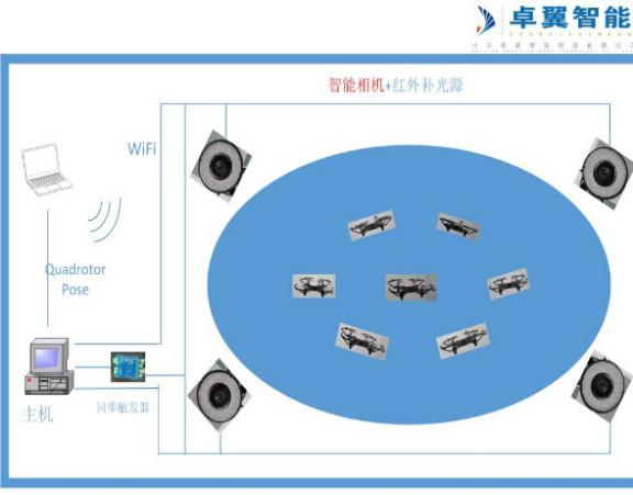 基于室内光学定位系统的室内多旋翼控制平台,可开展编队通信原理、集群算法、无人机集群作战运用等实践教学。让学校实验室专注于无人机多机协同编队等无人机集群关键技术研究,检验理论成果,提升实验效率,更能大大推动教学研一体化进程,加速教学、科研的进度。