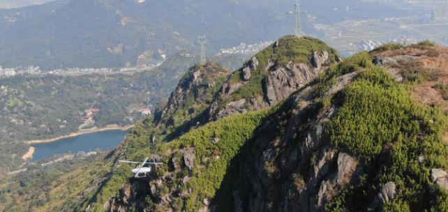此次作业区域位于浙江省温州市平阳县鳌江镇东爿村,为浙东中低山丘陵地带。施工地点G6号塔段位于山岭之上,标高430m左右,此处为投放点,周围220kV高压线塔密布,电磁环境恶劣。临时起降点位于半山腰盘山路边,树木林立、空间狭小,停机坪面积仅为36平米。任务作业需从起降点将数十根塔架钢结构件吊运飞行至山顶施工处上空精准投放。塔架钢结构单根最大重量为110公斤,最小重量为35公斤,长短不一、形状各异。飞行航线穿越山谷,风向多变。