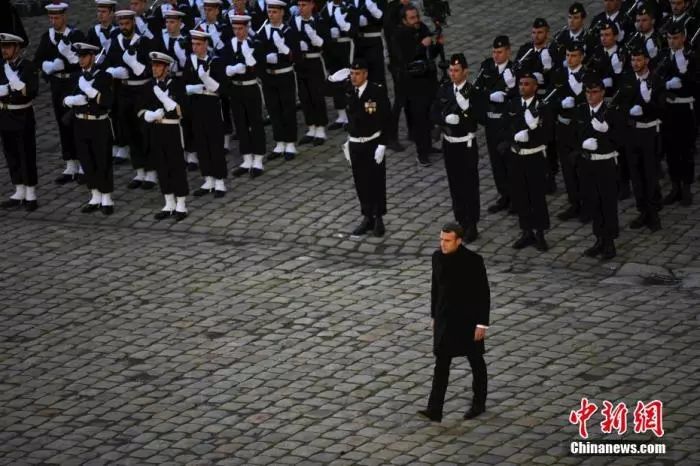 当地时间12月2日,法国在巴黎荣军院举行隆重的国家悼念仪式,哀悼在马里遇难的13名法军士兵。法国总统马克龙出席悼念仪式,并检阅法军部队。中新社记者 李洋 摄