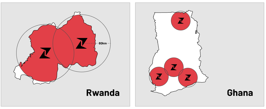 Zipline公司宣称,这样的医疗用品运输任务已完成25000多次。截至2019年5月,在卢旺达首都基加利以外的地区,超过65%的血液运送都是通过Zipline医疗无人机来完成的。在加纳,该公司于2019年4月开始使用无人机运送疫苗、血液和药品。与此同时,在亚洲的印度、菲律宾,Zipline的医疗无人机也即将投入使用,另外美军也在前不久的演习有所装备试用。