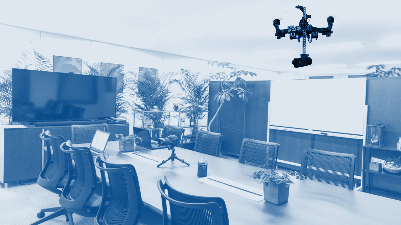 可以将不晃动轴的4D重力无人机固定在天花板上,在夜间绕着办公室保安飞行,并在早上返回天花板。