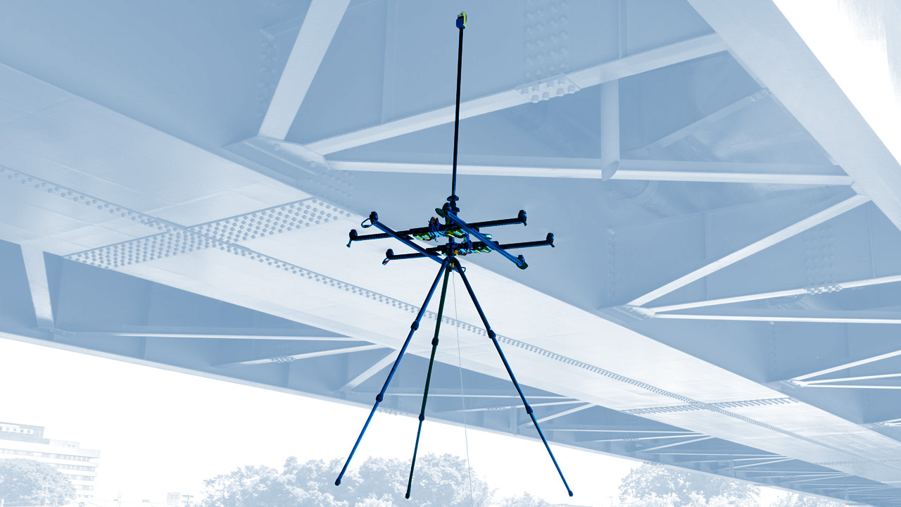 可以用摄像头检查的无人机,该摄像头安装在狭长的杆状空间的末端,可检查桥梁背面。