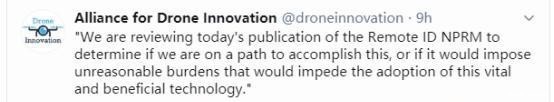 这项提议公布后,无人机创新联盟(Alliance for Drone Innovation)称,会关注这个提议的进度,以确保正朝着实现这一目标的道路前进,并留意是否会出现不合理的障碍阻碍了这项重要而有益技术的采用。