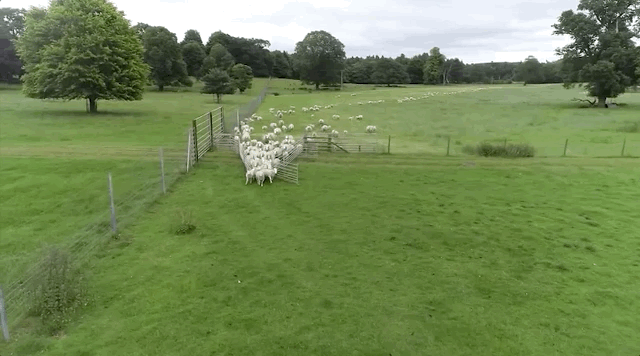 在这几只绵羊和无人机建立了积极的关系后,农民把它们放回羊群,它们就会向其他绵羊「安利」。英国什罗普郡的农民 Wojtek Behnke 通过这种方式,在几周之内就让自己的 100 只羊主动跟着无人机跑了。