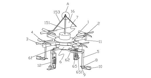 在这份发明专利中,描述了一种防倾倒小型运载无人机,包括主控机舱,主控机舱的四周依次均布有多根机臂,机臂的外侧端固定设有伺服电机,伺服电机的上侧输出轴上安装有螺旋叶片,主控机舱下方依次设有四根支腿,主控机舱与四根支腿之间设有能控制四根支腿收缩或张开的调节机构,主控机舱顶部设有能平衡无人机飞行姿态的平衡机构。