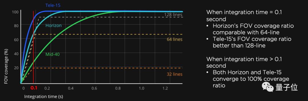 当积分时间为0.1秒时,Tele-15可以在15°圆形视场范围内扫描99.8%的区域,胜过目前市场上销售的128线机械激光雷达。