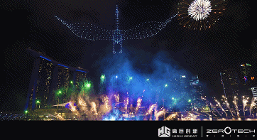 自2017年在国庆典礼上使用300架无人机庆祝后,滨海湾再一次呈献具有创新性的无人机表演。这一次伴随着一瞬间点亮整片夜空璀璨的烟花,震撼人心的音乐让滨海湾成为狂欢者的天堂。晚上22时30分,开始长达90分钟的烟花音乐剧,500架无人机在滨海湾空中肆意飞舞,组成水母、鱼尾狮、轮船等多个对新加坡别具意义的图案,陪伴大家跨越这个时代。