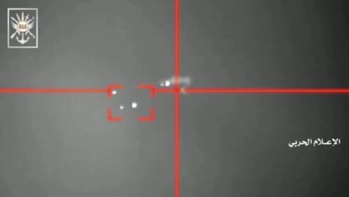 值得一提的是,在此次胡塞武装公布的一系列现场视频中,还带有一段由红外摄像机记录的全过程。如图所示,红外镜头下的无人机轮廓清晰可见,而其尾部最为明亮的部分,应该就是正在工作的发动机。可见在导弹发射之前,这架彩虹-4就已被胡塞防空部队的光电系统锁定。