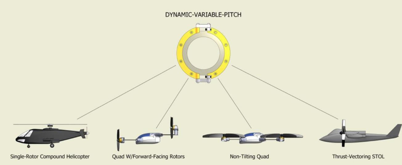 动态可变螺距基于挠性凸轮,该挠性凸轮由挠性钢和与螺旋桨或转子系统配合的其他独特组件制成。凸轮矢量推力并抵消升力的不对称性。推力矢量的好处是能够在没有跑道的情况下起降。Blainjett Aviation的技术可以做到这一点,同时避免了其他系统的某些缺点。该凸轮还可抵消升力的不对称性,稳定直升飞机的直升飞机速度,并增加速度,使其从不超过(VNE)速度。
