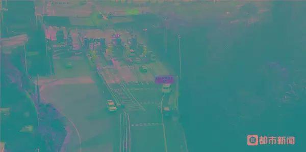 图为在高速公路违停的车辆在普安收费站被交警拦截(无人机拍摄截图)