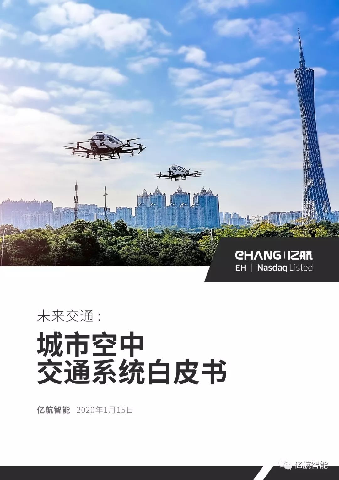 2020年1月15日, 全球领先的自动驾驶飞行器(AAV)科技企业亿航智能(NASDAQ: EH)发布了一篇长达40多页的《未来交通:城市空中交通系统白皮书》(以下简称“白皮书”),以及一支亿航城市空中交通生态系统视频。白皮书聚焦城市空中交通在全球交通出行方式领域的的颠覆性潜力,就行业结构、发展定位、产品设计理念、产业链关系、运营管理、商业化应用、法律法规、未来趋势等多方面进行论述。
