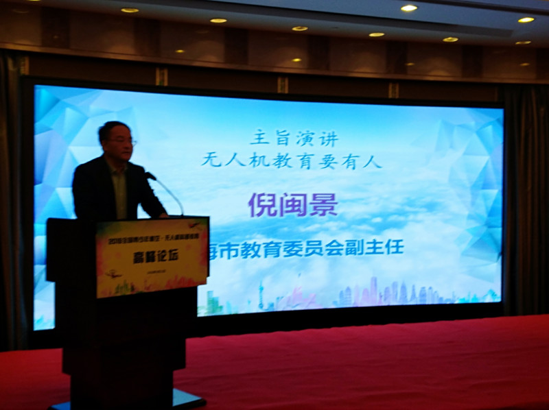 2019全国青少年航空·无人机科普教育高峰论坛上,上海市教委副主任倪闽景首先在论坛上发表了主旨演讲《无人机教育要有人》。他指出无人机的科普教育发展关键是建设好一支专业化的教师队伍,航空无人机的发展关键是科技人才,无人机科普教育重在出人才,出高端人才。