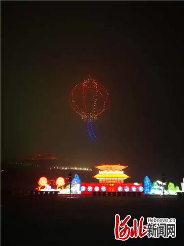 1月17日晚,500架无人机在河北正定园博园上空组成各种创意图案,呈现古城正定的特色及元素画面。据工作人员介绍,今晚无人机灯光秀是临时“加场”,是“回首千年自在正定”河北新春游园灯会活动的一部分。