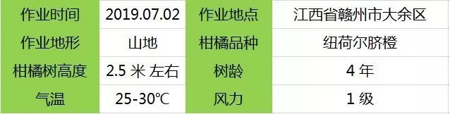 2. 在赣南脐橙上作业时,4 年以下的树通常用 2.5 升/分钟的流速,4-8 年的树通常用 3 升/分钟的流速,8 年以上的树用 3.5 升/分钟的流速;