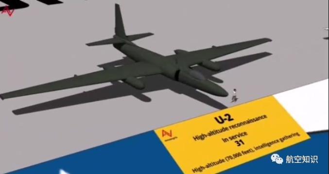 U-2,外号蛟龙夫人(Dragon Lady),是一种单座单发动机的高空,能不分昼夜于70,000英尺(21,336米)高空执行全天候侦察任务。