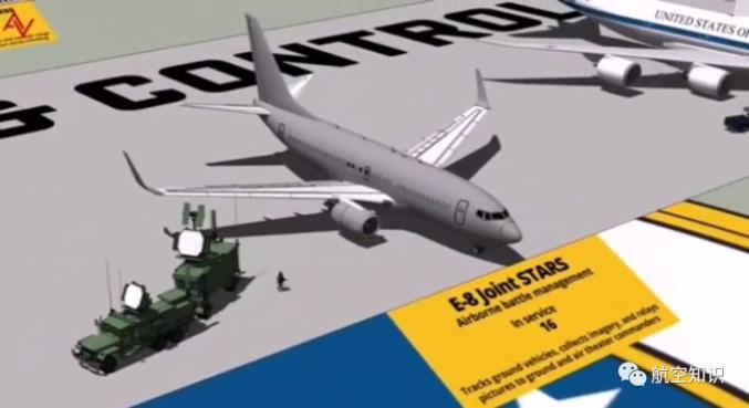 E-8“联合监视目标攻击雷达系统”(Joint Surveillance Target Attack Radar System),英文缩写为Joint STARS。E-8是美国空军一种集机载地面监视、战斗管理、指挥及控制功能于一身的飞机。它可以跟踪地面车辆及部分飞机、收集图像、向地面和空中的指挥人员传递战术图像。
