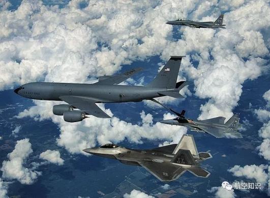 ▲与F15施行加油任务的KC-135R(中央)F-22(下)