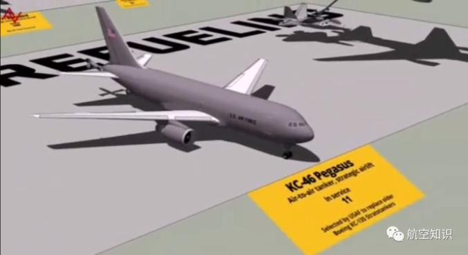 KC-46A是一种战略运输机和空中加油机,改装自波音767-200ER的多用途客货两用加油机。与KC-767空中加油机相比,KC-46几乎全新设计,最大载油量从160000磅(72575千克)增加到212299磅(96297千克),硬式加油的加油杆的输油量从900加仑(3407升/分钟)增加到1200加仑/分钟(4552升/分钟),增加了4个内部油箱,另外还有两个翼下软式加油点。