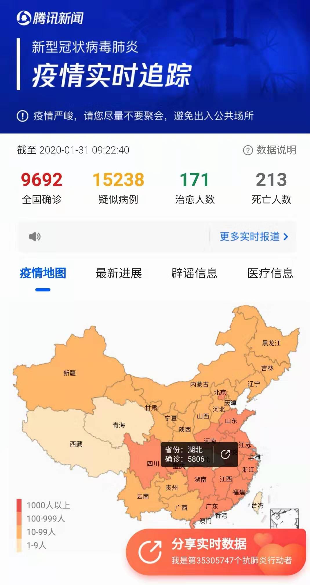 2020年1月31日,来自腾讯新闻关于“新型冠状病毒”所造成的伤害显示,湖北地区以及沿海一带人口密集区仍然是病毒高爆发地区。虽然目前全国以及做了强有力的防范措施,但是感染人数和死亡人数仍在增加。据专家所言,这是因为前期爆发期迅猛所致,总体来看自我们加强防护和隔离之后这种传播速度有所下降,治愈病例也逐渐增多,但是我们仍然不可掉以轻心,要等到疫苗研制成功。