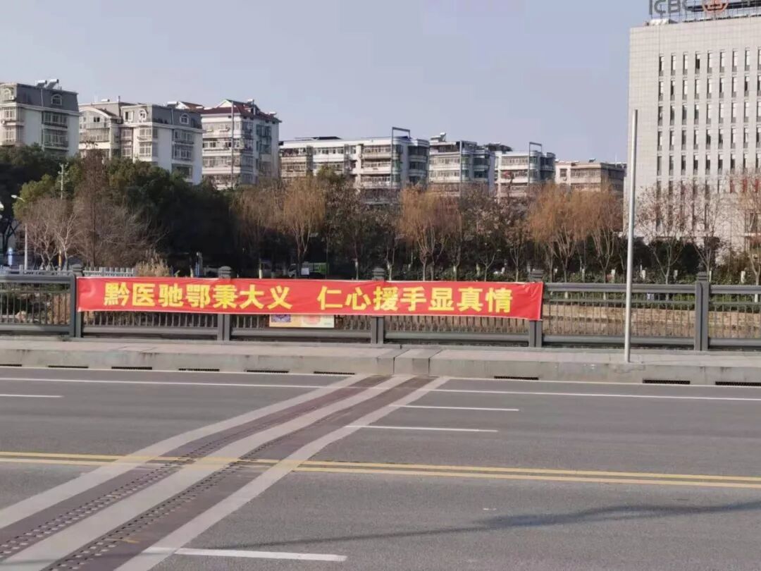 为了感谢贵州来的医护人员,鄂州人民在街头打出横幅表示感谢——