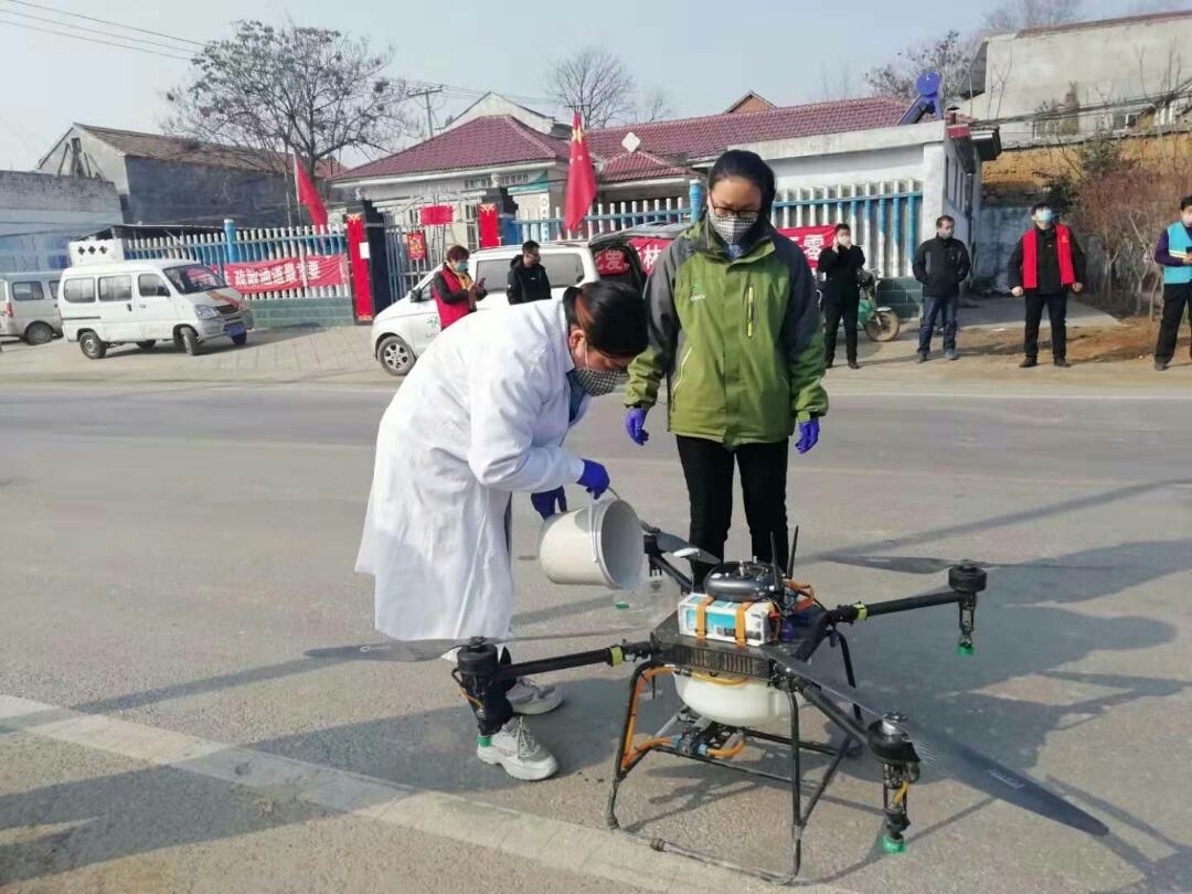 界面山东报道,1月30日,曲阜市时庄街道供销社志愿者服务队正在各村居开展免费的无人机消毒液喷洒作业。