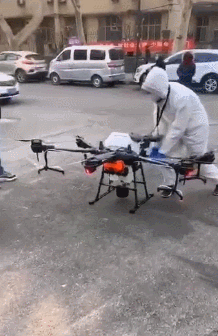 用无人机在居民区喷洒消毒液