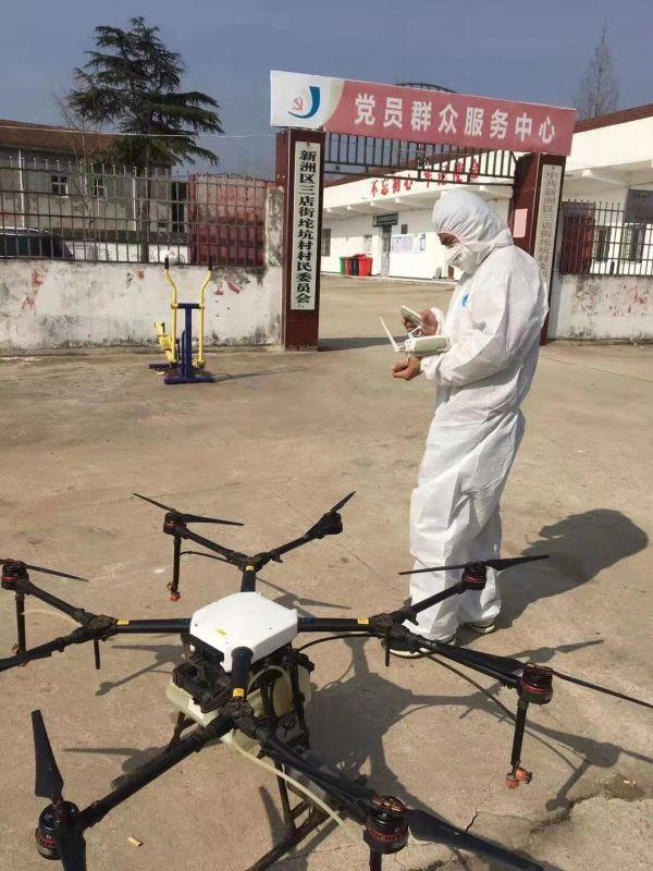 他赶紧联系朋友,借来无人机,装上村里提供的消毒液,为坨坑村10个村湾的公共厕所、道路、垃圾收集站等部位进行消毒。