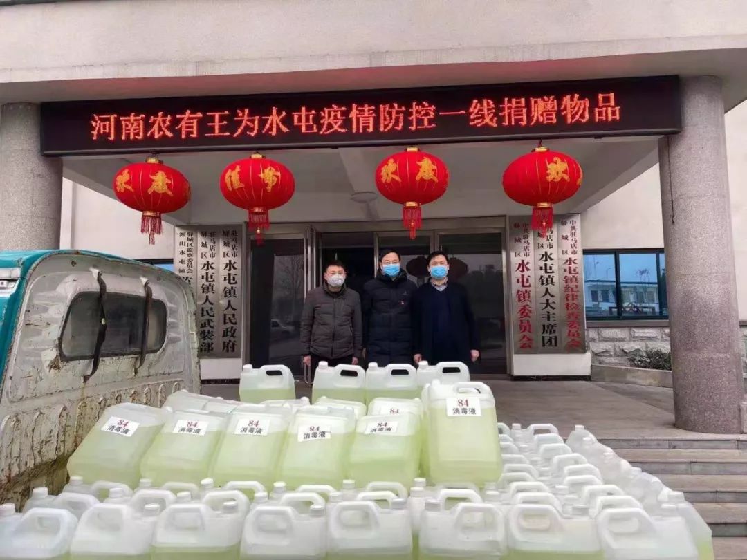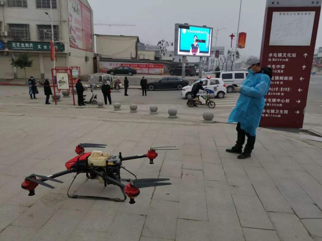 据了解,执行此次消杀作业的河南农吉耕种防收作业服务队是由河南农有王农业装备科技股份有限公司和驻马店市农业机械合作社联合社共同筹建成立的大型专业服务组织。为了在这场疫情防控攻坚战中贡献力量,他们组织了无人机在水屯街道、关帝庙街道等地方的沿街商铺门口喷洒消毒液,除此之外,河南农有王农业装备科技股份有限公司还为水屯镇捐赠了1000公斤的84消毒液,用于疫情的一线防控工作。