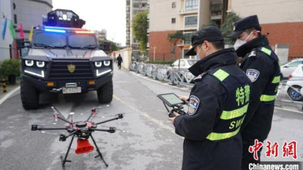 疫情期间,广西桂林警方发挥警务工作离群众最近的优势,灵活运用无人机、巡逻车、小喇叭等,努力做到疫情防控宣传全覆盖、接地气。无人机高空喊话:“骑电动车的这位市民,请你把口罩戴起来,桂林特警提示您不要外出逗留。”2月6日开始,一段“硬核”的防疫视频在朋友圈里广为流传,视频地点在桂林市三里店附近,一台无人机正对不戴口罩、人员聚集等防疫隐患行为进行监测和喊话。