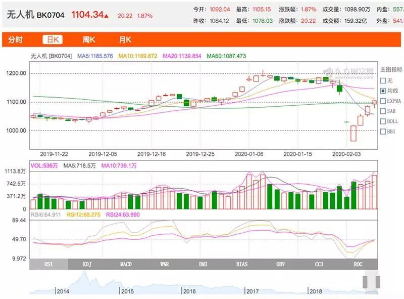 东方财富数据显示,A股无人机板块近三个交易日均出现上涨。其中,2月7日,威海广泰、航天电子、雪莱特分别以10.01%、9.94%、9.91%的涨幅领涨,中海达、赛为智能、中电兴发、中航机电、中国卫星、金通灵、新安股份等也涨幅居前。