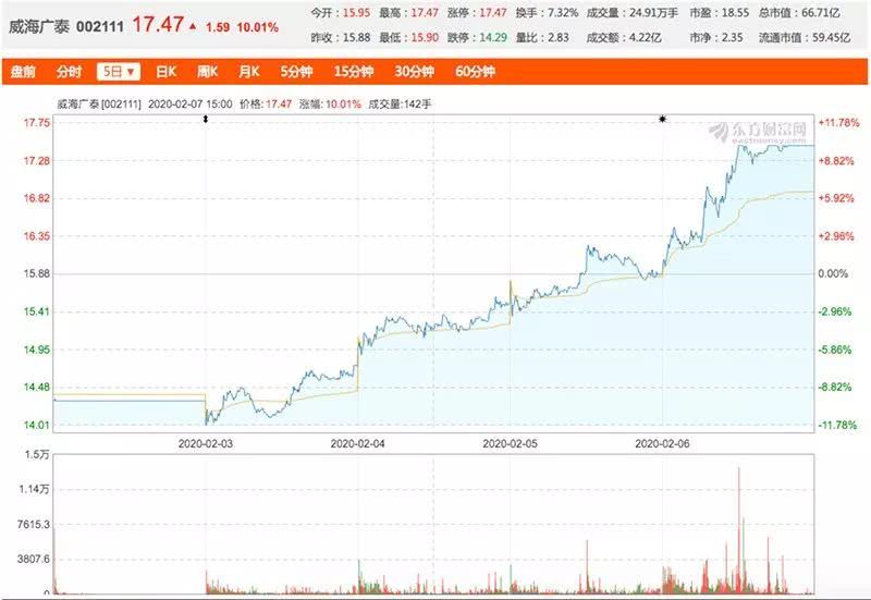 威海广泰最新披露的2019年业绩预告显示,公司预计2019年度归属于上市公司股东净利润为3.17亿元至3.52亿元,同比增长35%至50%。报告期内,公司军工业务快速增长,航空产业和消防产业较为稳定。