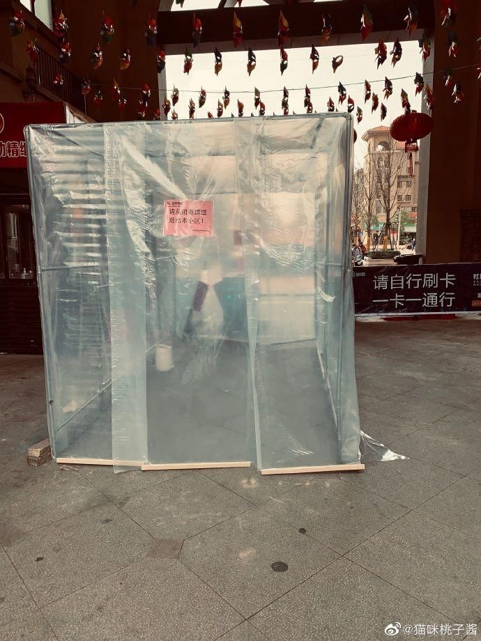 2月8日起,汉阳金地澜菲溪岸小区开始在小区供行人进出的唯一一个进出口处,安装了一的消毒棚。