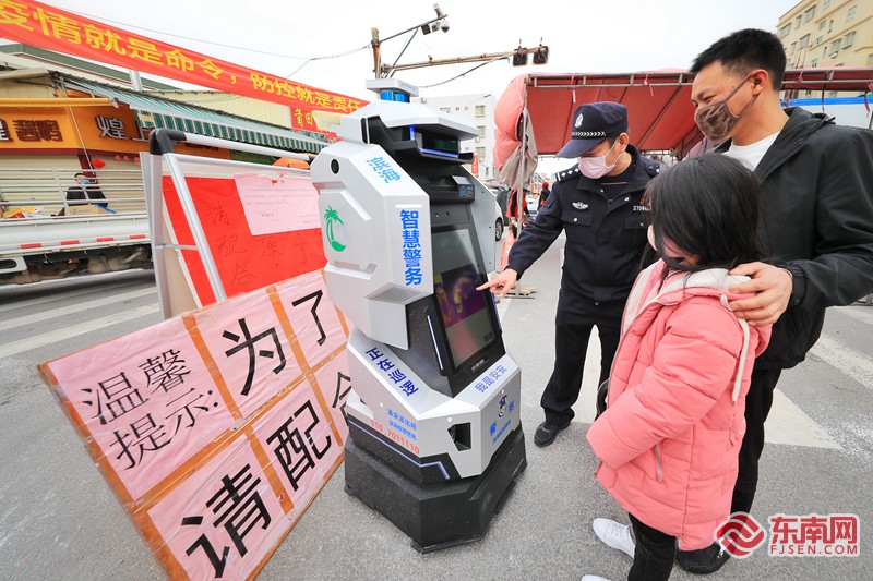 厦门市同安区潘涂派出所投入三台机器人、一台无人车、两台无人机,分别在辖区四个人员较为密集的区域执勤。智慧警务机器人新上线的红外热成像温度感应功能,可实现2米范围内人体温度检测,当人员靠近,安安“肚子”上的电子显示屏上就能实时显示靠近人员的体温。