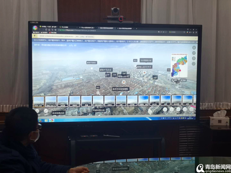 青岛新闻网2月10日讯(记者 任俊峰 通讯员 王佳)“大屏中显示的是无人机刚刚巡查传回的画面,大同街西卡口处有王春娥等3名工作人员正在卡口执勤,登记进入社区的车辆信息,我们把镜头放大看看,是本地牌照,没有异常就可以通行。”2月10日下午三点,胶州阜安街道党工委书记张翠华在街道三楼会议室利用智慧防疫管理平台召开疫情防控工作会议。
