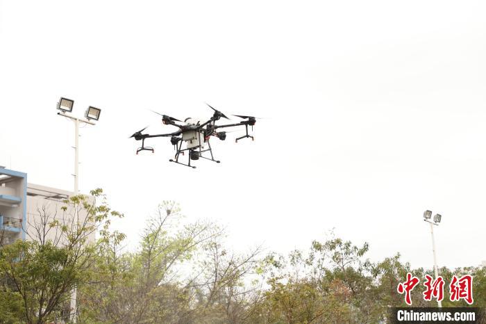 无人机在消杀作业中。 钟欣 摄