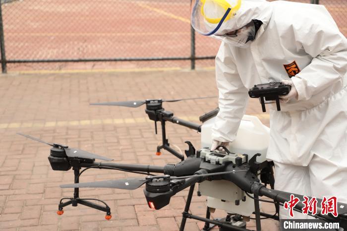 中新网深圳2月8日电(记者 郑小红)8日下午,深圳大疆防疫志愿服务队在深圳宝龙工业园60万平方米的工业园区进行消杀作业,为该园区营造更加安全的环境,保障园区的顺利复工。