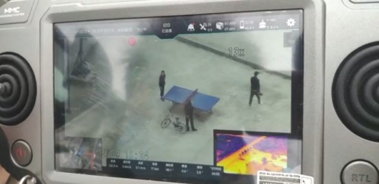 在肇庆,多架无人机出动,徘徊在高速路口的上空,在高速路口实施空中巡逻震慑、巡逻监控和督查;在鼎湖东站、坑口市场等出入口设,利用无人机携带的测温仪器,对来往的人员,指点测温,对体温超过预设温度的人员,发出告警,工作人员马上上前进行再拦截。
