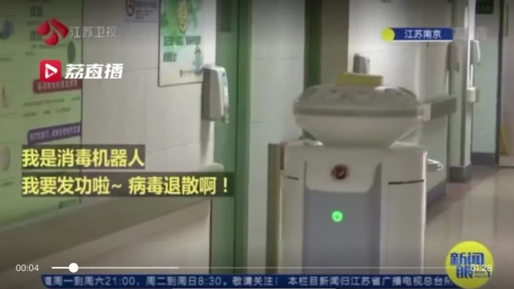 南京第一医院启用了消毒机器人。它不用戴口罩,不用穿防护服也不会被感染。可以360度无死角进行紫外线消毒。▼