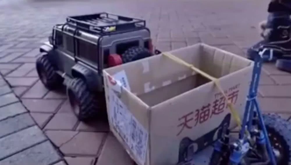 山东济南一位90后陈姓小姐姐用遥控车出门买馒头。▼