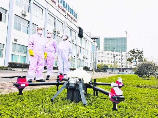 贵阳网讯 2月8日下午,针对高新区生产企业和创业园区面积较大、工作人员尚未复工等特点,为确保即将返岗的员工有更加安全的工作环境,贵阳国家高新区联手贵州省民用无人机应用协会,采用无人机喷洒消毒液的方式,对辖区内办公区域进行了防疫消杀。