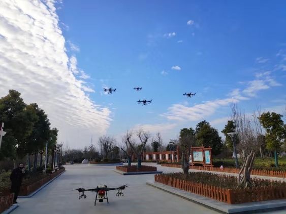 河南省方禾科技淮阳分公司大疆无人机防疫志愿者服务队于2月10日首次出动,带来了7台植保无人机T20,初步计划利用一周的时间,预计作业面积将超过100万平方米。