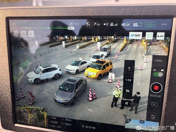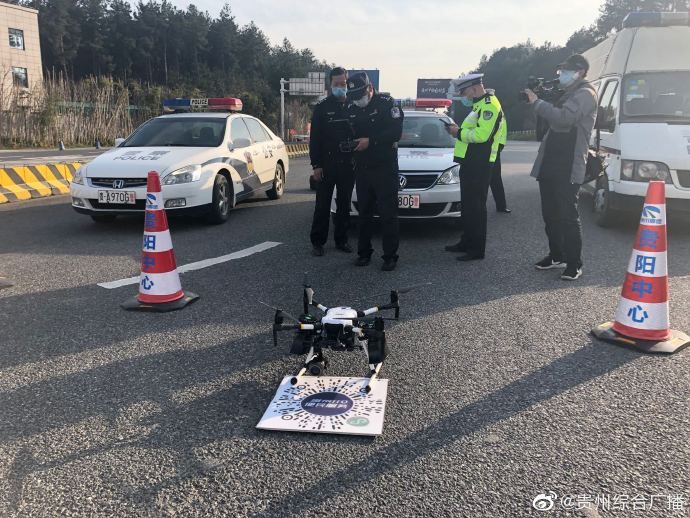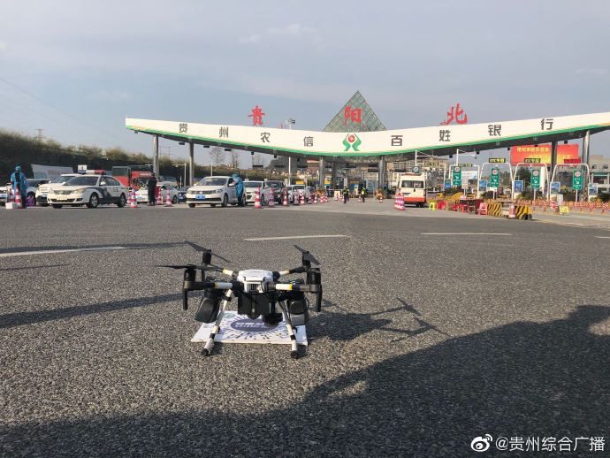 从2月12号开始,贵阳市交管局高速支队再出新招,联合省公安厅警航办启用警用无人机在贵阳西、贵阳南、贵阳北三个收费站进行远端提示,开展“空中”扫码登记进城。